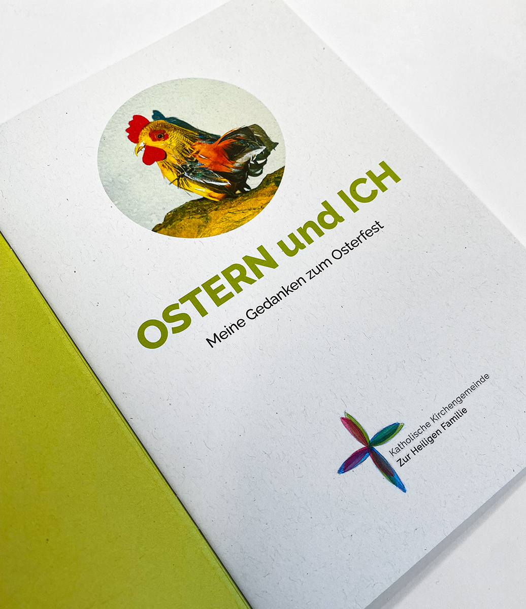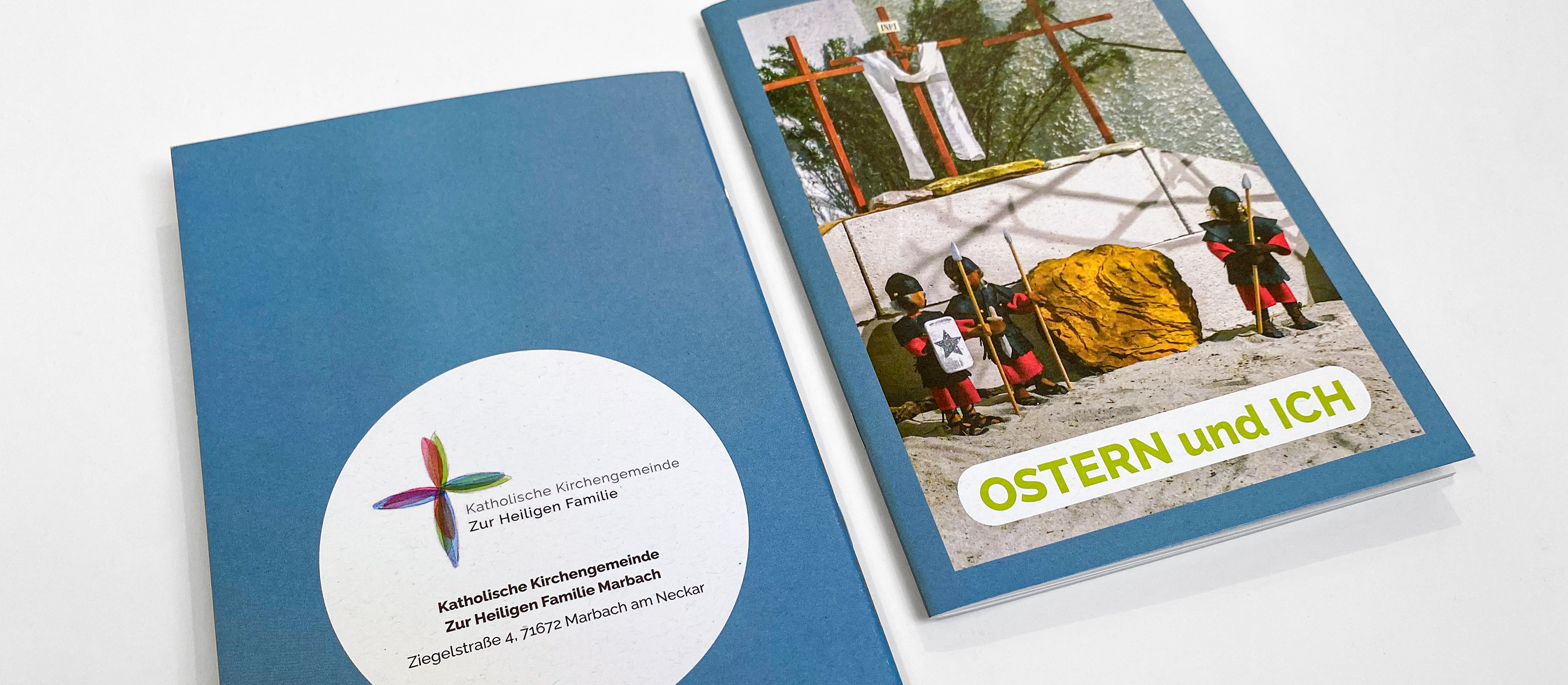 Für die katholische Kirchengemeinde Zur Heiligen Familie in Marbach am Neckar habe ich gemeinsam mit Pfarrer Stefan Spitznagel das Buch mit dem Titel „Ostern und ich – Meine Gedanken zum Osterfest“ realisiert. Von Palmsonntag bis Ostermontag lädt es insbesondere Jugendliche dazu ein, über ihre eigene Beziehung zu Jesus nachzudenken und sich mit der Ostergeschichte auseinanderzusetzen.